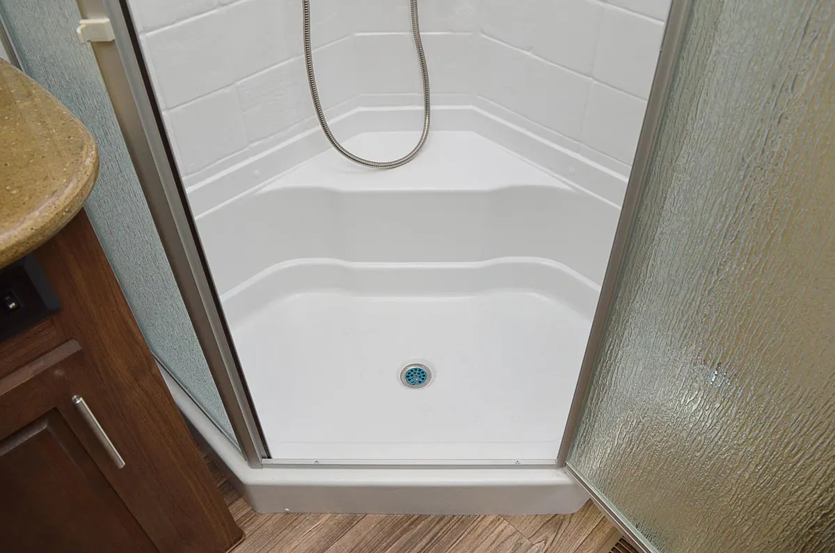 Porcelain, Foot-Pedal Toilet / Glass Shower Encl.
